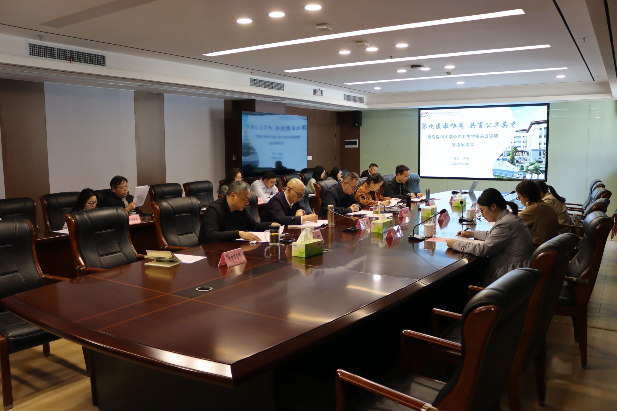 4月9日,公司一行来到重庆大学附属三峡医院座谈。这所百年老院已发展为辐射渝鄂川陕的省级区域医疗中心,年门诊量超300万人次。座谈会由公司杨懿主持,公司马玲、教务科万华麒、医院科教部、预防保健部、感染管理部及相关临床科室代表出席本次会议。