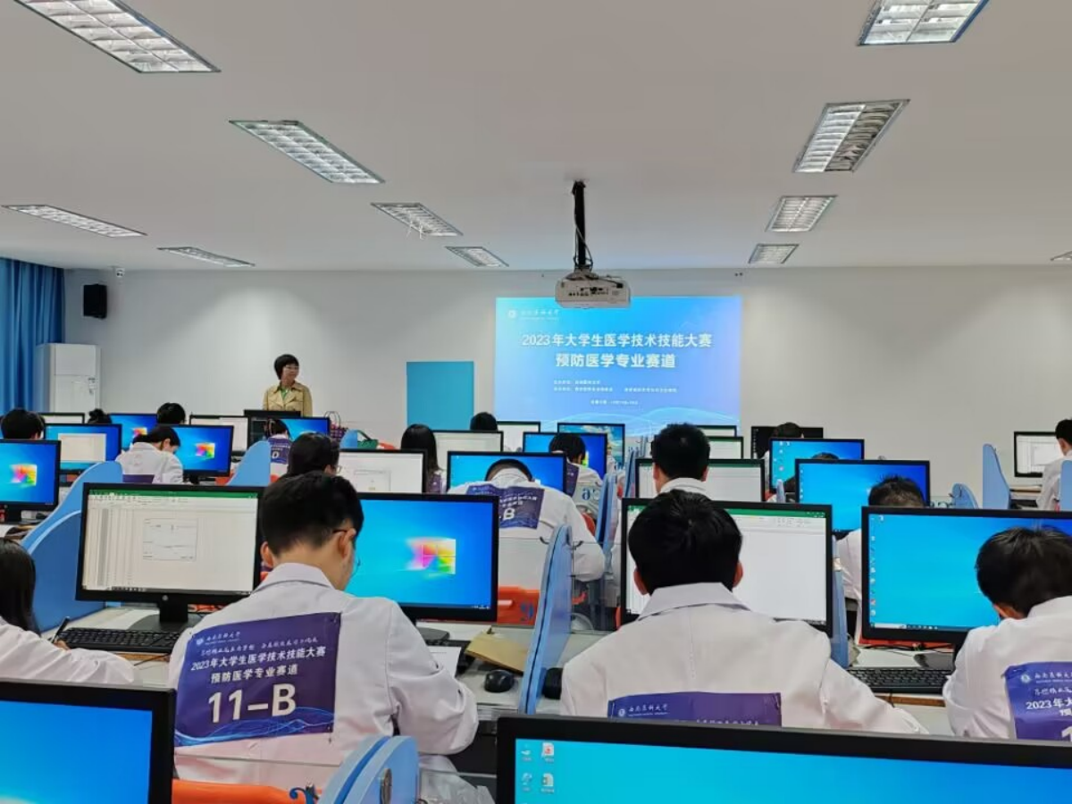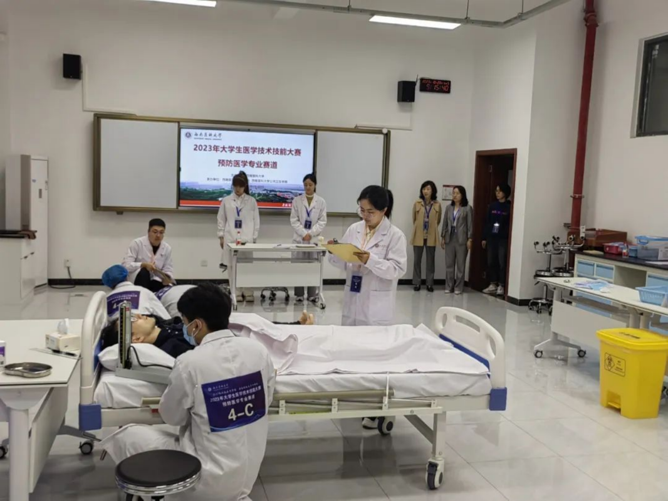 20日上午,公共卫生基本技能比赛正式进行,公司党委常委、副董事长何涛和教务处处长郑小莉巡查了比赛现场。本届大赛以“厚德精业筑医者梦想,夯基强技展学子风采”为主题,设立临床基本技能、个体防护、样本采集和现场检测、卫生处理4个考站。每站操作时间15分钟,时到即停,选手进入下一站,直至参赛队单向循环完成该考组各站竞赛内容。技能比赛重点考察参赛选手各专业领域的基本理论、基本知识、基本技能、思维能力、医学人文关怀与团队合作等综合素质。
