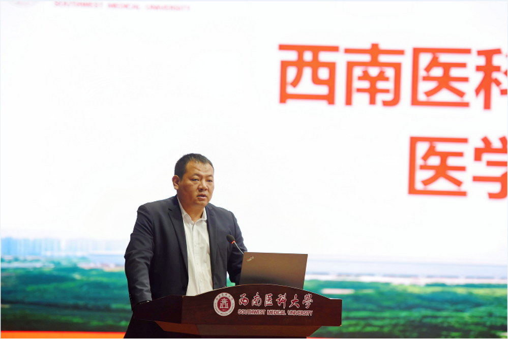 实践教学单位代表遂宁市疾病预防控制中心主任技师敬永计作了带教工作经验交流,他介绍了遂宁市疾病预防控制中心基本情况并分享了实践教学管理过程。