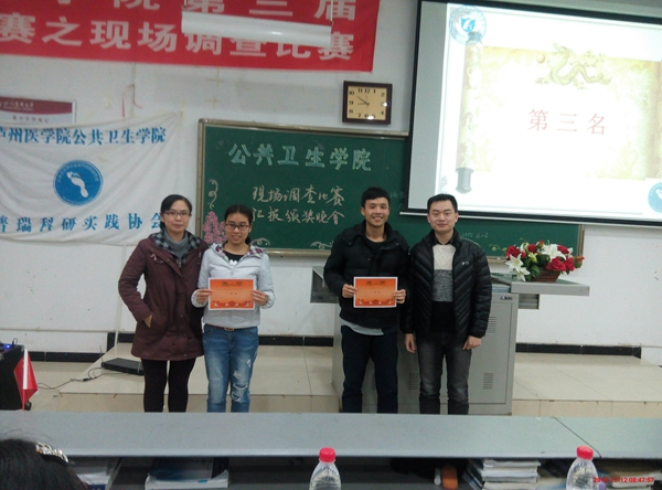 此次现场调查比赛,以bevictor伟德官网老员工科研课题《女老员工安全防范意识现状调查》为背景,从11月初开始,将参赛员工分为10个小组进行比赛,各小组在社会医学教研室李爱玲、范颂、陈润、汤艳、叶运莉等专任教师的指导下,对全校1000余名女老员工进行安全防范意识现状的现场调查,利用所学的统计学软件对问卷结果进行数据录入和分析,最后各组分别从不同的角度写出调查报告,评委老师对调查报告进行初评后选出了六个小组进入决赛。12月初举行决赛,六个小组根据初评意见进行补充和完善调查数据,派代表汇报并展示本小组的调查工作,并模拟现场调查和接受评委提问,最终成绩依据前期调查工作、现场模拟以及回答专家提问情况进行综合评分。决赛中,各组精心准备,现场比赛精彩纷呈,观众热情高涨,比赛最终评出了冠、亚、季军。
