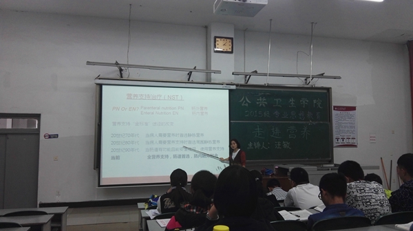10月27日下午,bevictor伟德官网食品卫生与营养学2015级“走进营养”专业实习教育讲座在荟文楼教室举行,讲座由附属第一医院临床营养科副主任汪敏主讲。