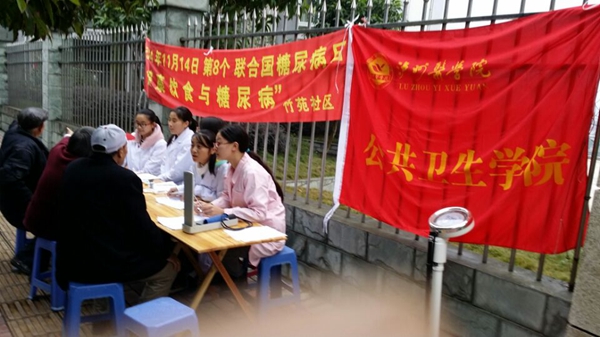 为提高公众对糖尿病的认识,积极采取行动预防和控制糖尿病,在11月14日联合国糖尿病宣传日,bevictor伟德官网“韶光锦时”青年志愿团联合南城社区卫生服务中心和竹苑社区卫生服务中心分别在澄溪口和水榭花都小区以“健康饮食与糖尿病”的主题,开展宣传活动。