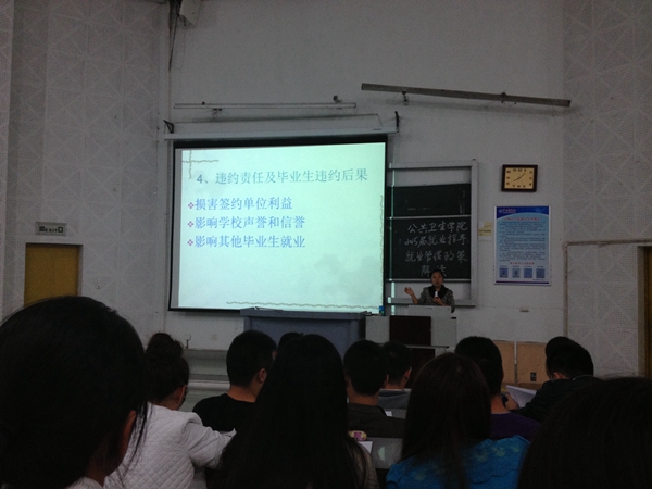 此次讲座让毕业生们系统地了解就业管理程序,指导其慎重签约,为明年顺利就业打下基础。