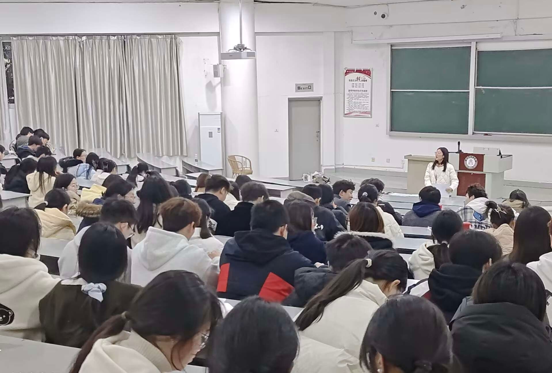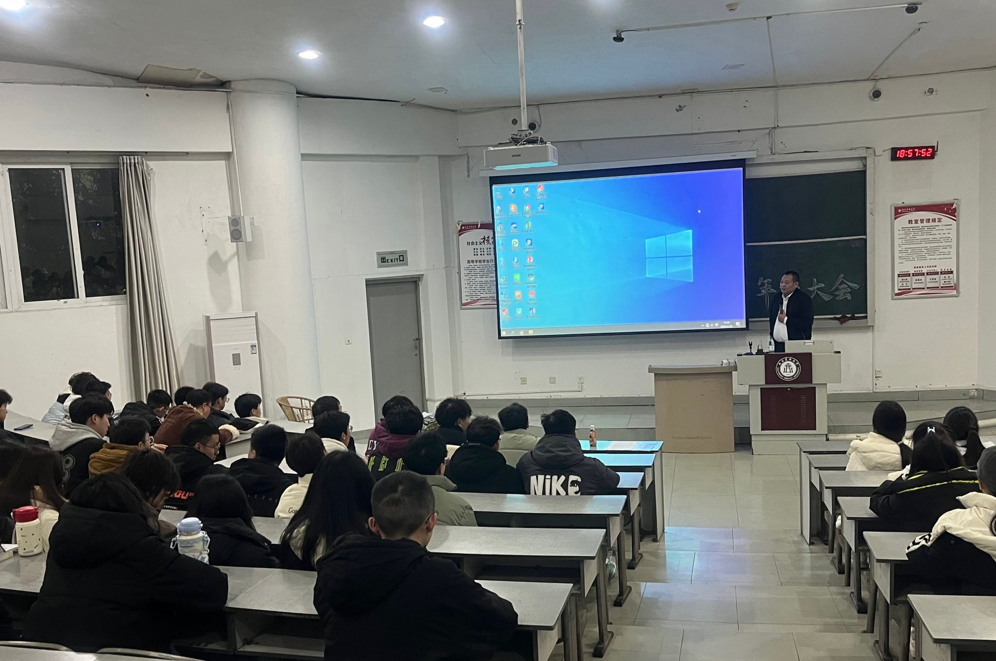 彭丽冰围绕“假期生活”“学期工作总结”“安全教育”和“新学期展望”四个方面进行了讲解。她提醒同学们增强自我保护意识,确保人身安全,防范网络诈骗,遵守寝室管理制度。最后,她鼓励大家尽快调整状态,合理规划,争取在新学期取得更大进步。