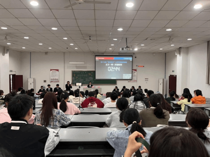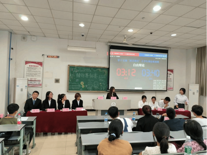 而在514教室中,首先是基础22级二办辩论队与人文与管理公司辩论队间的争锋。对于“国家强大,是知识支持更重要还是经济支持更重要”这一辩题,辩论双方都有各自耳目一新的见解。正方以“知识是理论与实践的结合”为据点通过经典论据列举、准确分析和犀利论述,进而振振有词地论证“知识支持更为重要”。而反方则从历史、儒释道文化、经济数据等多方面出发,在权衡知识与经济后,有条不紊地指出“经济支持更为重要”。思维的碰撞火花四溅,逻辑的交锋攻防不断,最终,在这场惊心动魄的辩论拉锯战中,来自人文与管理公司的反方辩论队以80分的微弱优势胜于来自基础22级二办,得分为79分的正方辩论队。