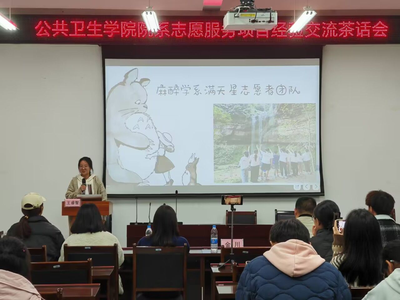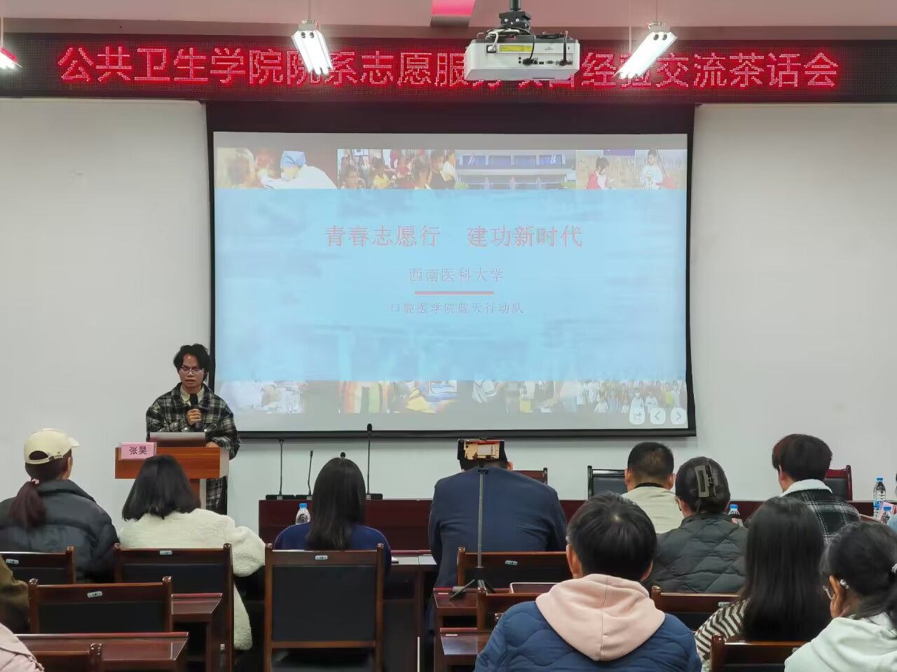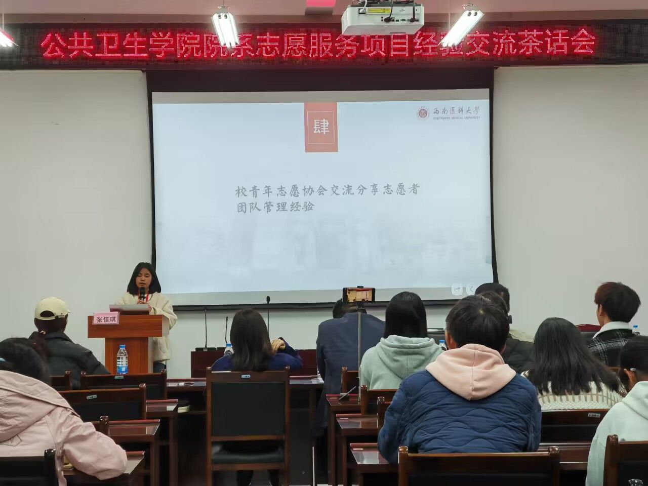 麻醉学系志愿者团队队长王睿智同学交流分享了本团队参加今年四川省高校志愿服务项目大赛的过程感受,包括前期准备、比赛收获、复盘比赛以及对未来的展望。