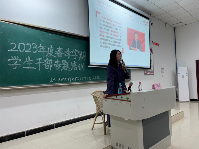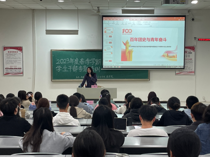 专题培训由马克思主义公司彭鎏佳教授主讲,彭鎏佳老师带领全体干部同学回顾中国共青团发展的百年光辉历程。1922年,在中国共产党直接领导下,中国共产主义青年团成立。中国共青团在百年间始终坚定不移跟党走,团结带领共青团员和广大青年前赴后继、勇当先锋,为党的建设培养德才兼备的可靠后备军,书写了中国青年百年的奋斗华章。彭鎏佳老师详细向全体干部同学介绍各阶段共青团发展的成就和变革,回顾百年团史,团结带领广大青年是共青团永不改变的初心和使命。