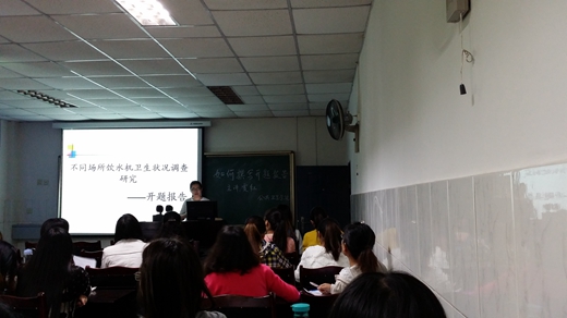开题报告会上,项目负责人潘庆、张品华和徐漪分别对《青少年近视前期评估量表的研制》、《具性早熟征象的女童心理及社会适应能力与正常儿童的比较研究》、《不同场所饮水机水龙头污染状况及快速消毒湿巾的研发》三个项目依次陈述自己所选课题的依据、研究目标、内容、方法以及技术路线等。