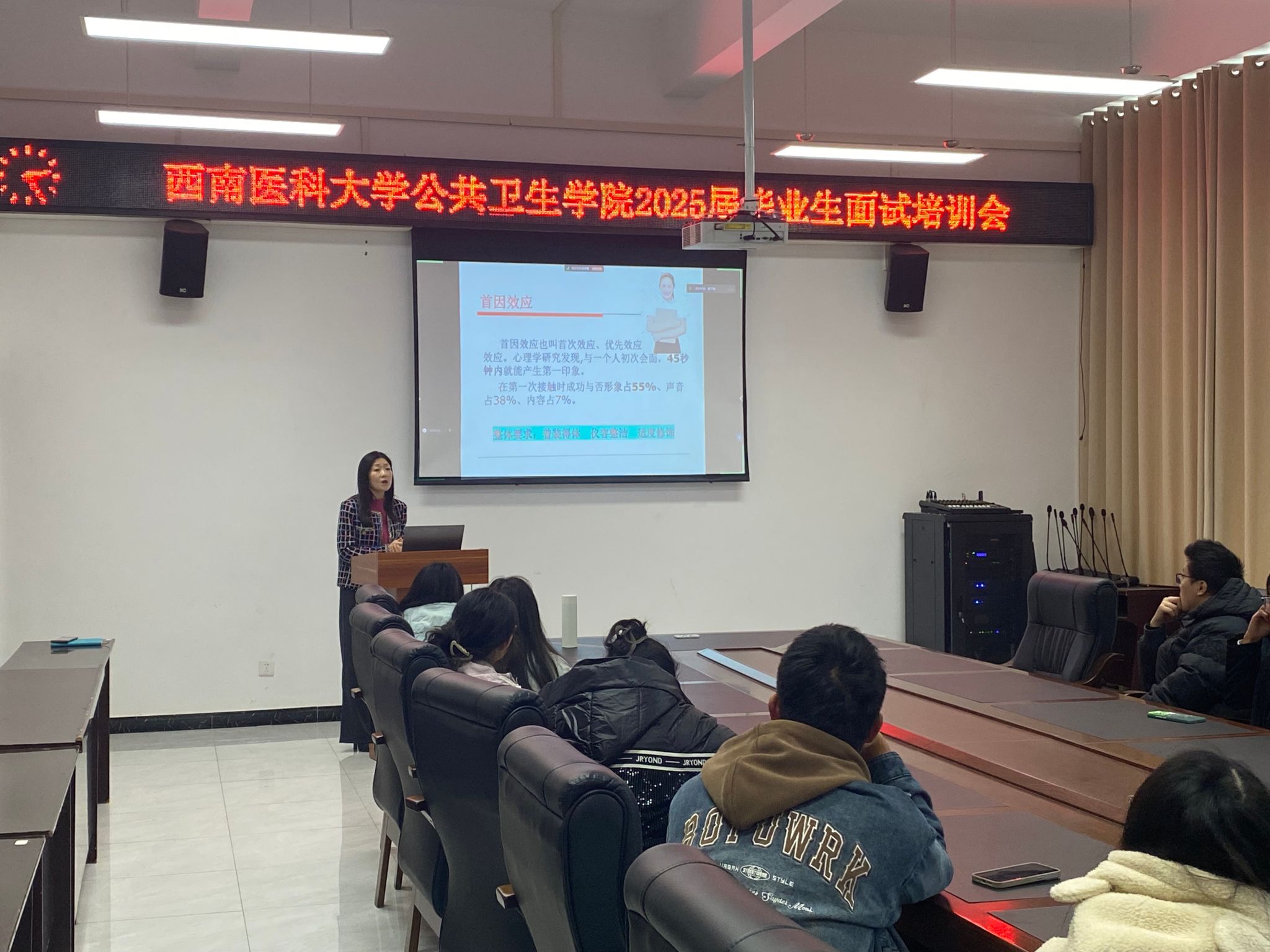 会上,彭丽冰围绕面试的基本流程、常见问题、着装礼仪及应对策略进行了详细讲解,并强调了面试中自我介绍的重要性,指导毕业生如何突出自己的专业优势和实践经验,以及如何精准表达个人职业规划。