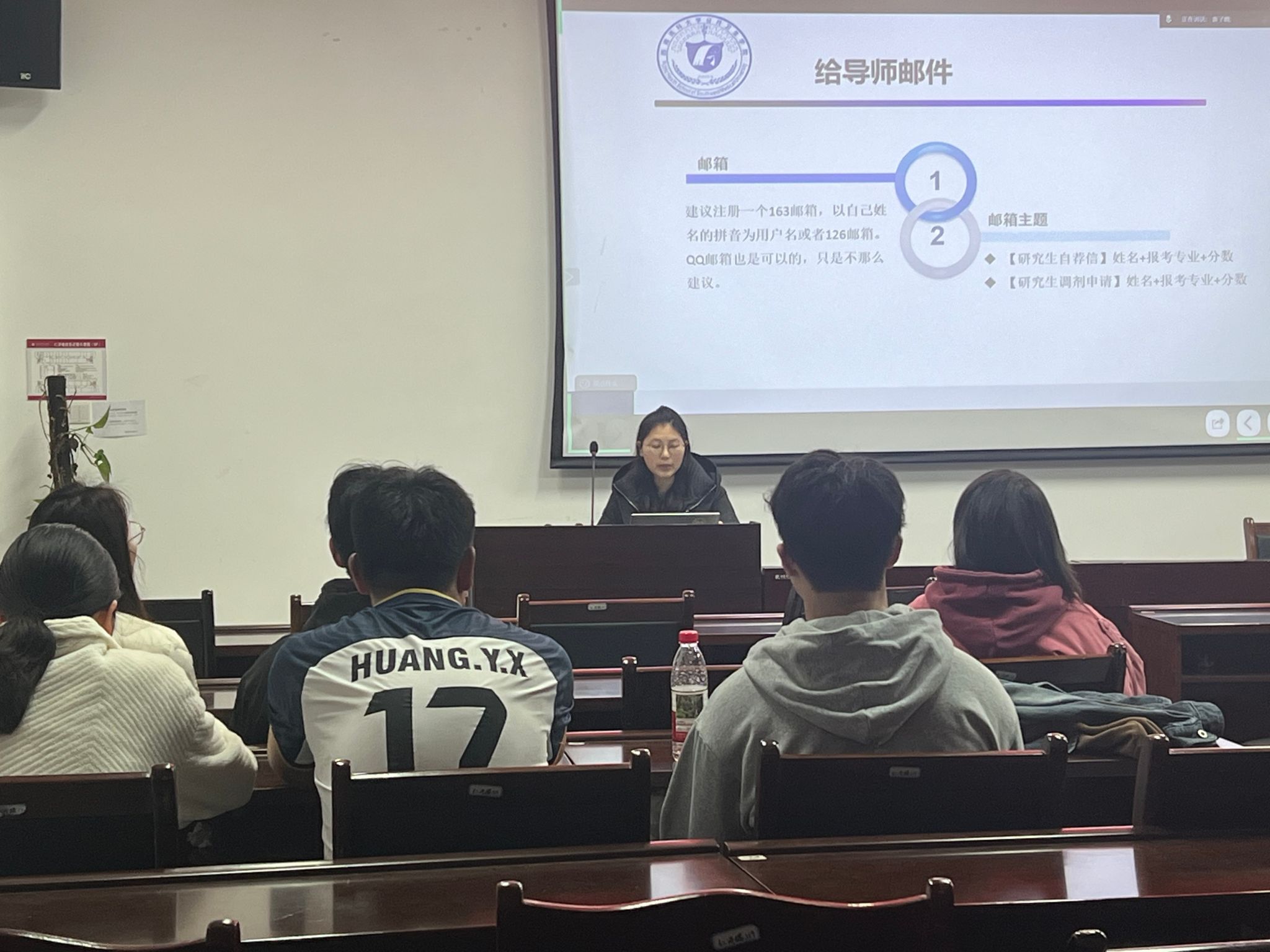随后,三位学长学姐凭借亲身经历,分享了调剂路上的挑战应对、策略运用及成功心得,为在场同学提供了宝贵的实战参考。他们还针对调剂常见疑问,逐一耐心解答,提出多项实用建议。