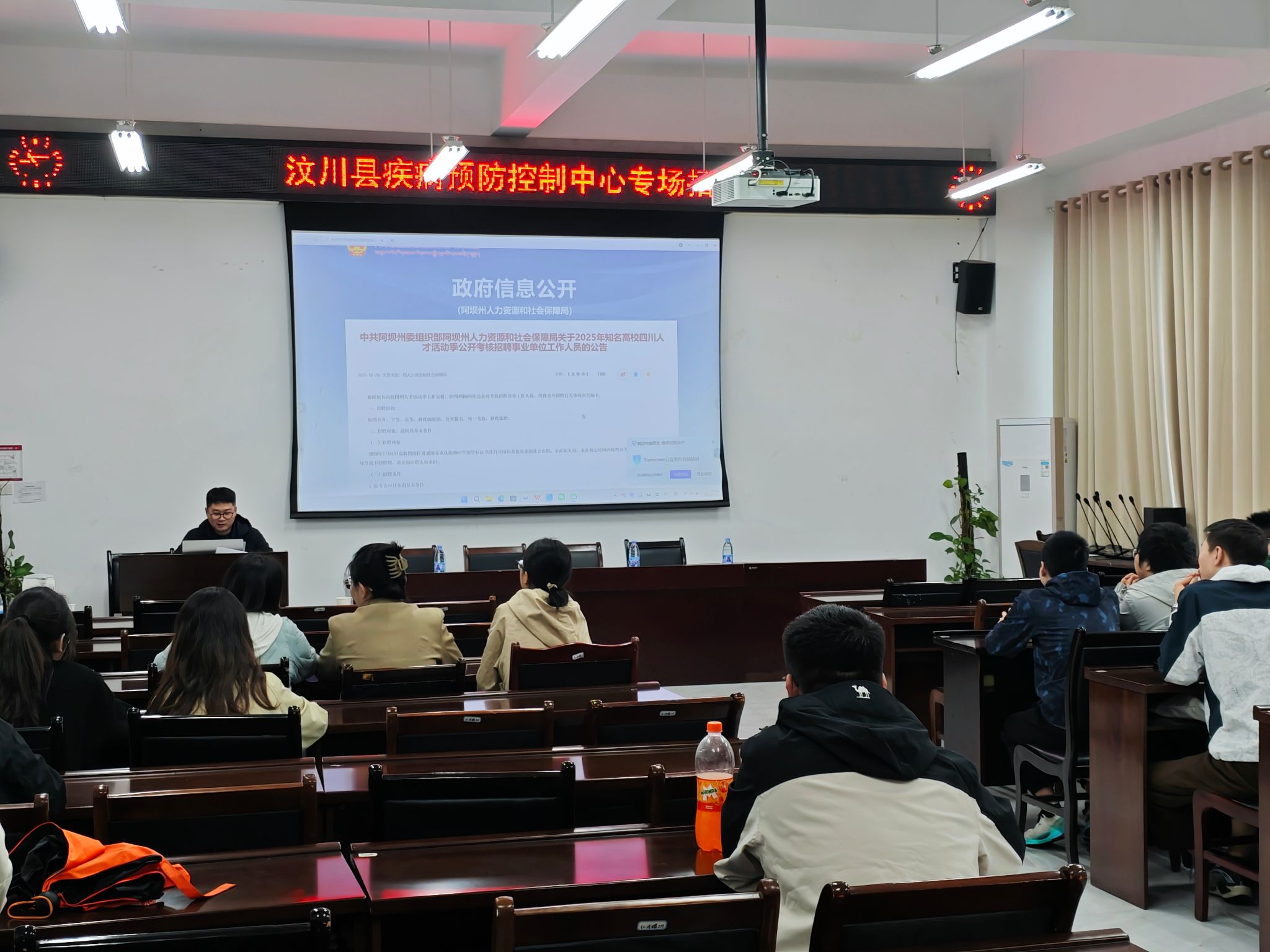 招聘会伊始,冉光宇以“扎根基层卫健康,青春建功新时代”为题,系统介绍了汶川县公共卫生事业发展现状、疾控中心组织架构、岗位需求及人才培养规划。他指出,汶川县作为国家级乡村振兴重点帮扶县,近年来在传染病防控、慢性病管理、卫生应急等领域取得显著成效,但仍面临专业人才短缺的挑战。此次专场招聘旨在吸纳优秀毕业生加入基层疾控队伍,共同守护汶川群众生命健康,为建设“健康汶川”注入青春力量。