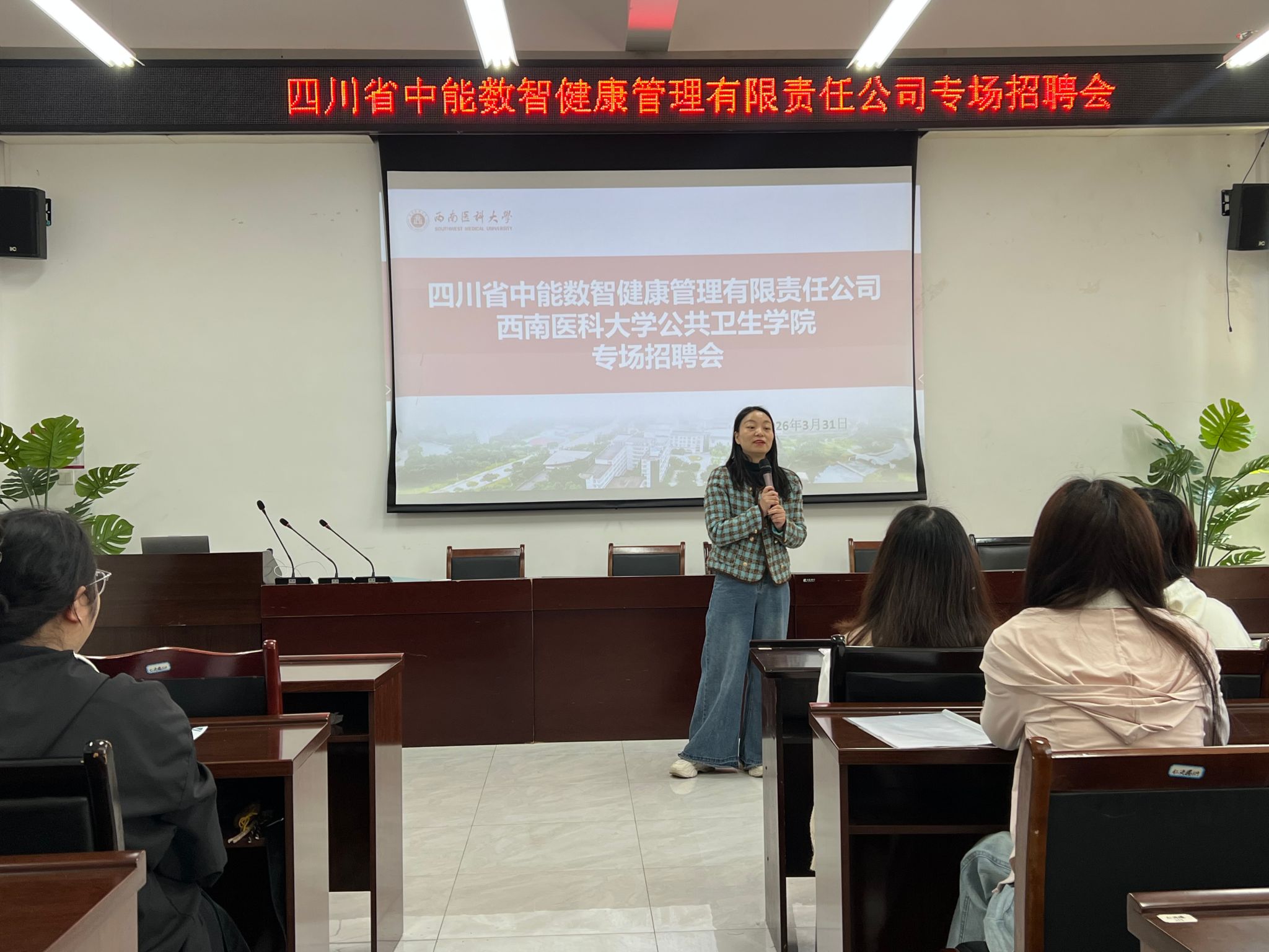 招聘会上,公司人力资源主任陈星首先通过企业宣传片系统介绍了公司的发展历程、核心业务及未来规划。作为省内领先的智慧健康管理企业,公司专注于慢性病防控、健康大数据分析及公共卫生信息化服务。陈星重点解读了本次招聘岗位的职责要求、薪资福利及职业发展路径,强调公司注重人才培养,为应届生提供“一对一导师带教+项目实战+定期培训”的成长体系。