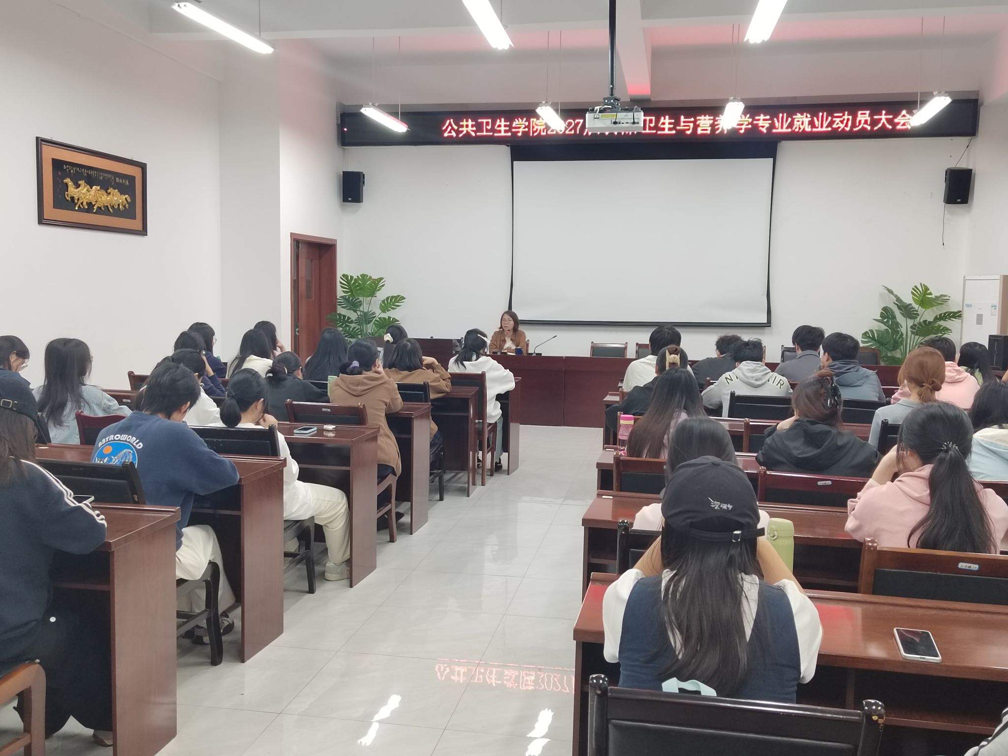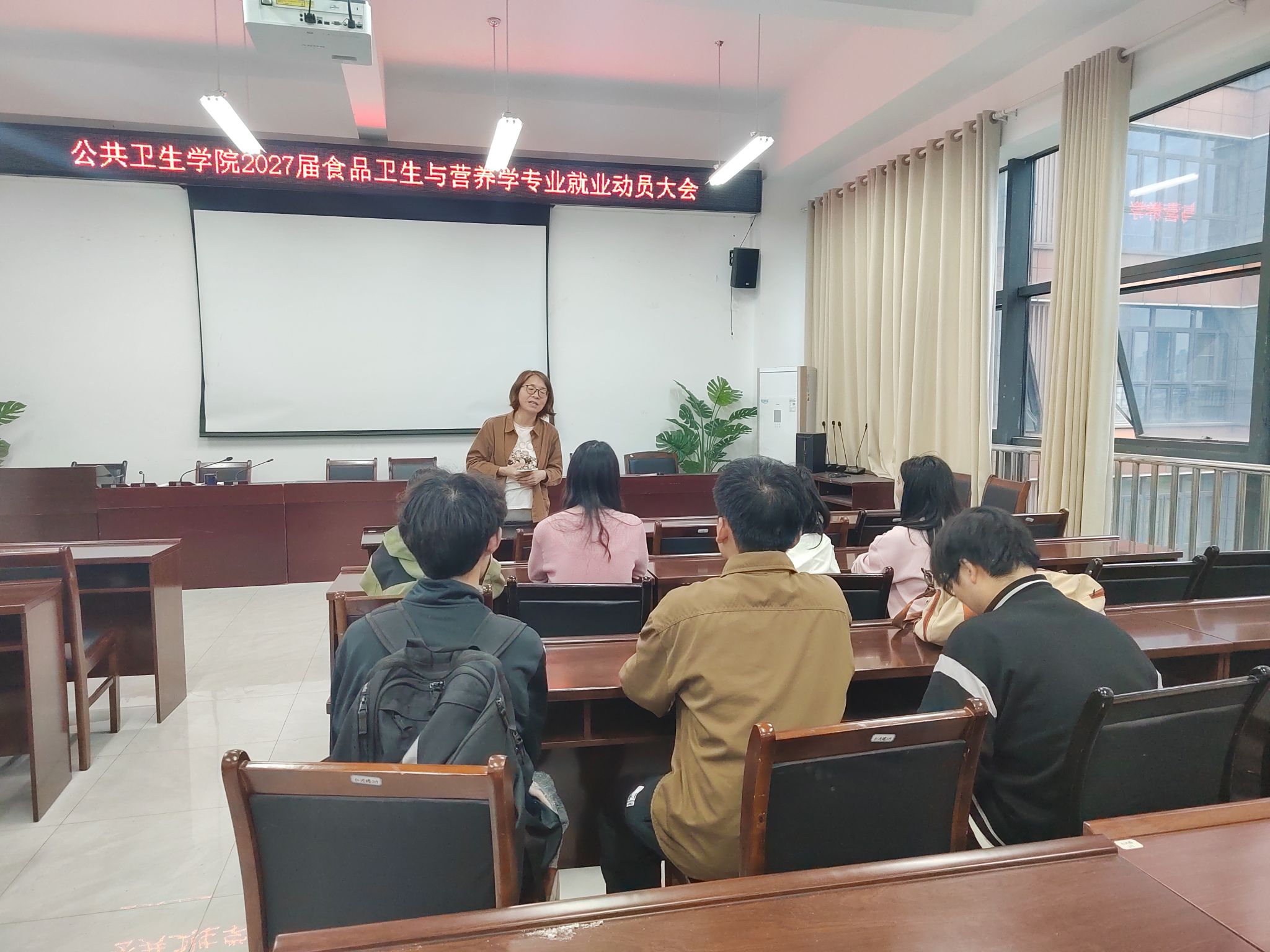为帮助毕业生明确职业方向、破解就业困惑,2026年4月22日下午,公司召开2027届食品卫生与营养学专业毕业生就业动员大会,公司党委书记马玲教授担任主讲人,51名同学参加会议。