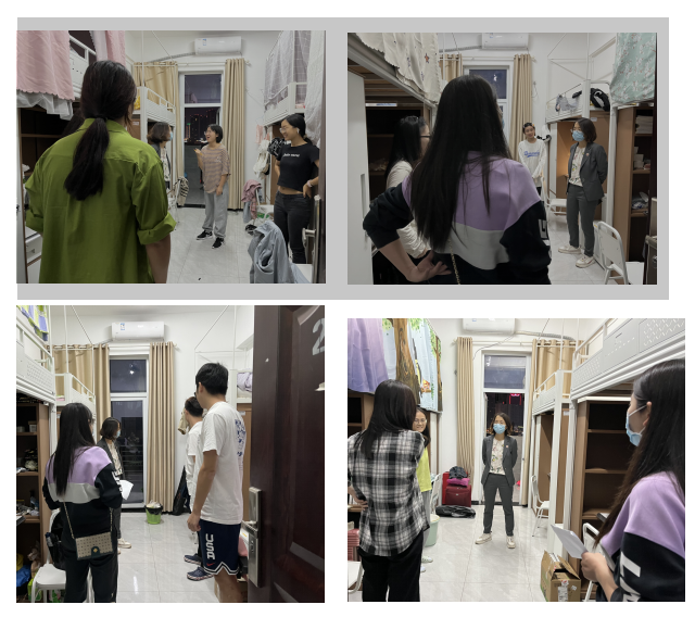 马玲一行逐一走访寝室,详细了解员工情况、生活情况、学习情况。走访中,与同学们进行亲切交谈,交流室友间的相处之道,提醒大家国庆期间的放假安排和在校的相关注意事项,要求同学们严格遵守公司的疫情防控相关规定,按时打卡报告,做好个人防护工作,叮嘱员工们遵规守纪,注意安全。同时,马玲还提醒同学们注意人身财产安全和寝室安全,注意寝室卫生,禁止在宿舍违规使用电器、严禁私拉乱接、防范火灾隐患等。