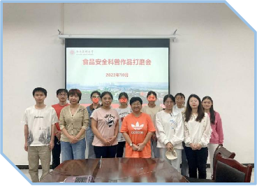 公司任课教师度重视此次活动,2022年10月1日以腾讯会议形式开展作品创作动员会和科普作品经验分享,2022年10月21日在仁济楼320会议室师生共同观看员工作品、提出修改意见,初筛科普作品。2022年10月28日在仁济楼营养教研室任课教师继续对修改后的推荐作品作进一步打磨,提出修改意见,并推选《提高免疫,轻松战“疫”》、《冰箱不是保险箱》等五个作品参赛。