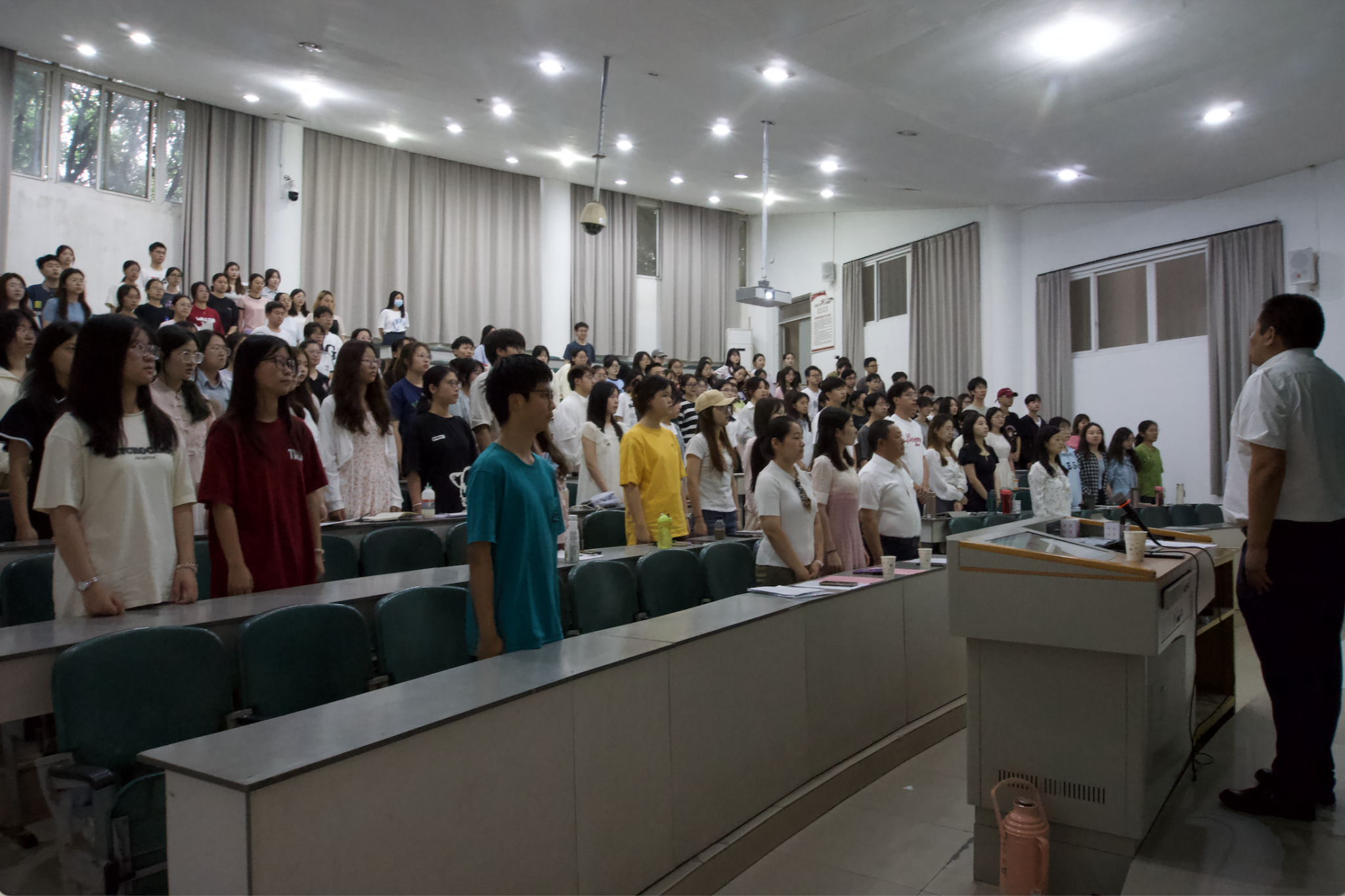 开班典礼在全体人员合唱《国歌》中拉开序幕,金川介绍了本期培训班基本情况并就培训期间的纪律等提出相关要求;2023级预防医学张明童同学作为学员代表发言。