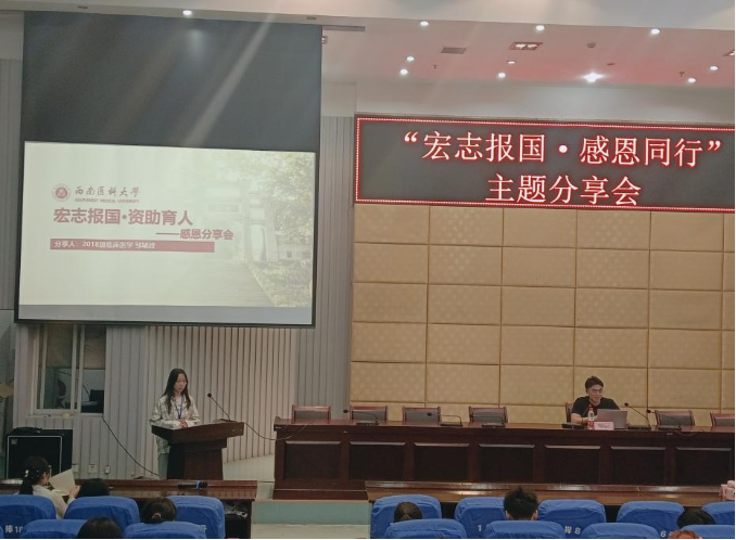 首先,18级预防医学的赵振虎学长上台为我们分享,他先为我们介绍了个人基本情况,他通过自身努力,不负众望,实现了个人目标。赵学长说资助政策给如同无形的手掌,减轻了他求学之路上的部分负担。赵学长为我们分享了他的学习经验及考研技巧,让同学们受益匪浅,收获颇多。