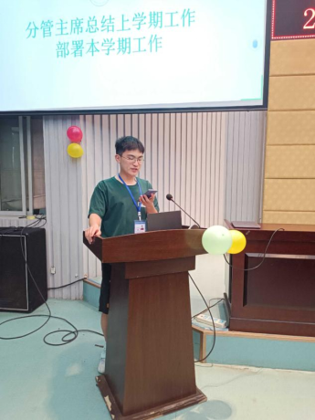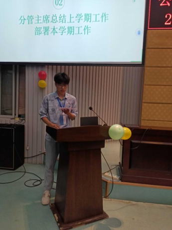 首先由分管主席吴尚璘、任宇翔、姜雅文、杨嘉平和卢佳丽同学分别总结上学期工作与部署本学期安排。上学期的各项工作成功顺利开展,离不开各部门全体同学齐心协力。希望各部门继续保持优良作风,高质量完成本学期所有工作,为下一届分团委·员工会奠定良好基础。