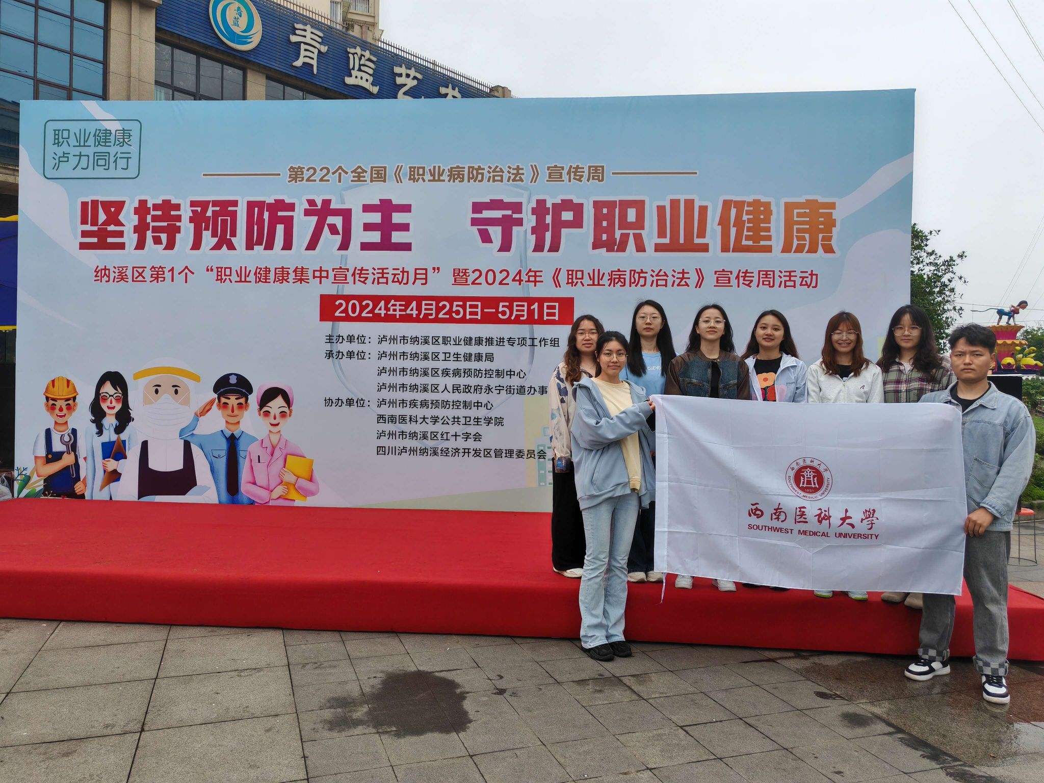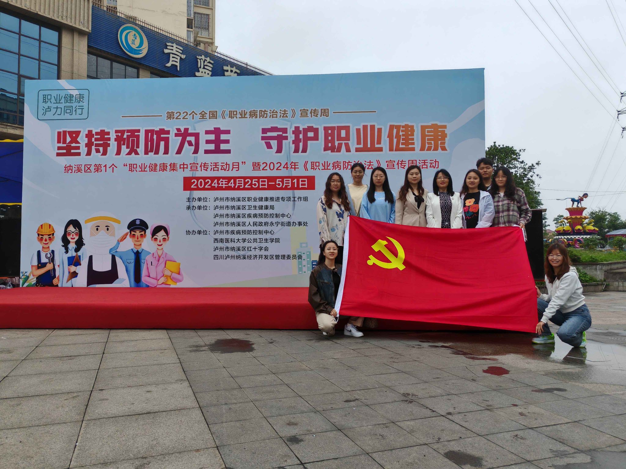 2024年4月25日至5月1日是第22个《职业病防治法》宣传周, 4月22日上午,泸州市纳溪区卫生健康局、纳溪区疾病预防控制中心和bevictor伟德官网等单位在泸州市纳溪区联合开展主题为“坚持预防为主,守护职业健康”的《职业病防治法》宣传周活动,旨在深入宣传贯彻《职业病防治法》,普及职业病防治知识,进一步提升广大劳动者对职业病防治的意识和重视程度。