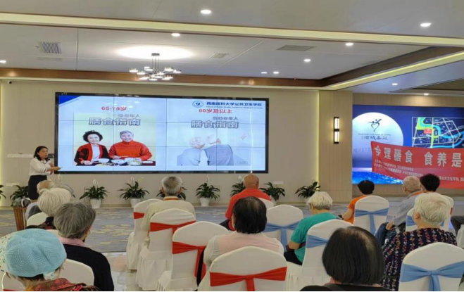 2023年5月25日上午,伟德BETVLCTOR1946营养教研室的杨艳老师带领伟德BETVLCTOR1946营火虫协会走进泸州市酒城嘉苑养老社区,杨艳老师做了题为“膳食营养,护航夕阳”的老年人群营养健康讲座。