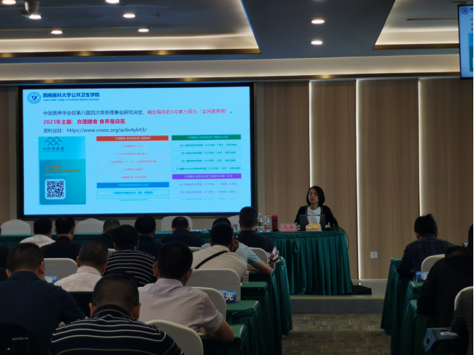 2023年5月12日bevictor伟德官网经理马玲教授在泸州职业技术公司实训基地,受邀为全市教育体育系统后勤管理干部开展营养健康的专题讲座。