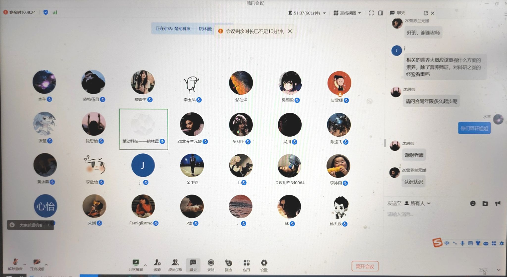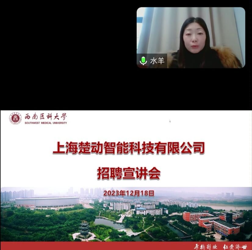 2023年12月18日上午10点,上海楚动智能科技有限公司西南大区总监姚林晨先生来公司开展线上招聘宣讲,公司员工科科长彭丽冰主持会议,30余名食品卫生与营养专业毕业生和低年级同学参加了此次线上招聘宣讲。