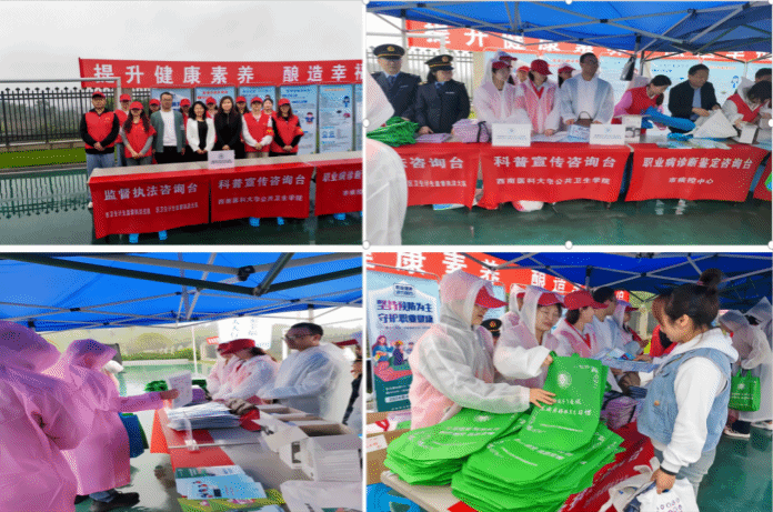 为认真贯彻党中央、国务院关于职业病防治工作的决策部署,进一步推动落实用人单位职业病防治主体责任,提升劳动者职业健康素养水平,切实保障广大劳动者职业健康权益,2024年4月24日,泸州市和龙马潭区第22个全国<职业病防治法>宣传周暨泸州市第一个“职业健康集中活动宣传月”启动仪式活动在(长江)经济开发区管理委员会隆重举行,今年的主题为“坚持预防为主,守护职业健康”,宣传形式包括现场宣传职业健康知识和开展知识讲座两部分。