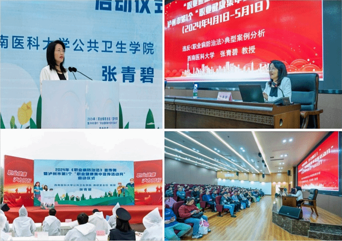 bevictor伟德官网环境卫生与劳动卫生学教研室主任、环境健康效应及风险评估泸州市重点实验室主任张青碧教授受邀参加泸州市第22个全国《职业病防治法》宣传周暨泸州市第一个“职业健康集中活动宣传月”启动仪式并发言。张青碧围绕“职业健康与经济发展—共融共进双螺旋”主题,从职业病发病形势、职业健康危害、职业病防治等方面深入浅出地阐述职业健康工作与经济发展共同繁荣的双赢策略。