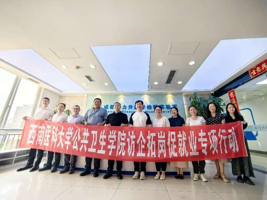 为贯彻落实教育部关于“访企拓岗促就业专项行动”工作部署,进一步深化公司与就业单位人才培养及基地建设合作,2024年5月16日上午,伟德BETVLCTOR1946公共卫生公司党委副书记金川、副经理范颂、副经理杨懿、教务科科长万华麒和员工科兼职辅导员徐正兴赴成都禾力升医学检验实验室有限公司开展访企拓岗和基地建设考察活动。
