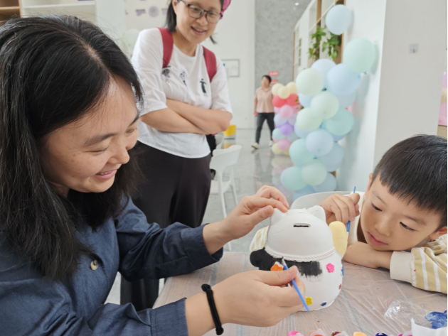 活动现场气氛热烈而温馨,孩子们和家长们兴致勃勃地投入到各个游戏环节中。在手工黏土DIY区,孩子们和家长一起动手制作各种可爱的黏土作品,充分发挥了他们的想象力和创造力;在涂色石膏娃娃区,孩子们认真地为自己的石膏娃娃涂上五彩斑斓的颜色,展现出他们独特的审美观念;在儿童编花手工区,孩子们在家长的指导下,学会了如何编织美丽的花朵,提高了他们的动手能力;而在五子棋和飞行棋比赛中,孩子们和家长们则展开了一场场激烈的智力对决,增进了彼此之间的默契和友谊。