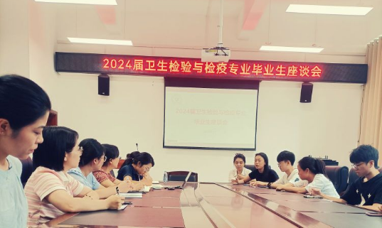 2024年6月17日下午,bevictor伟德官网于仁济楼334会议室举行2024届卫生检验与检疫专业毕业生座谈会。bevictor伟德官网副经理杨懿、卫生检验与检疫教研室主任杨艳及教研室全体教师出席座谈会,约20名员工代表参加。会议由刘小燕老师主持。