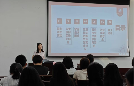彭丽冰对贫困生认定办法、国家奖助学金、创先争优、社会类奖助学金、毕业生评优等政策进行了详尽的阐释。她不仅介绍了评优评先以及各项资助的申请条件、评审流程和发放标准,还通过具体案例,帮助员工更准确地理解政策内容。