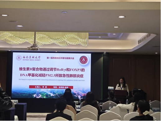2024年10月18日至10月20日,四川省、重庆市、贵州省、西藏预防医学会在成都市联合召开第一届西南地区环境与健康大会,主题为“携手共维西南美好环境”。公司共有7名在读研究生参会,其中会议收录论文2篇,壁报展示1个,且2023级研究生李崭的论文“维生素B 复合物通过调节 RoRγt 和 FOXP3 的 DNA 甲基化减轻PM2.5 所致急性肺部炎症”被会议评为优秀论文、会议收录并在分会场分享交流。