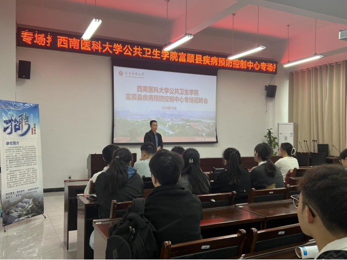 10月30日上午,富顺县疾病预防控制中心一行来到公司,在仁济楼319会议室举办专场招聘会,公司2025届38名毕业生参加。