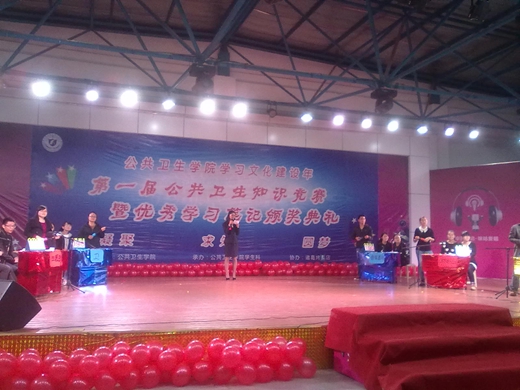 第二环节是第一届公共卫生知识竞赛决赛,本次竞赛在前期进行了初赛,由各班级为参赛单位,分别派3名同学参加理论考试,择优选取前六支队伍进入决赛,决赛分“唾手可得、分秒必争、扭转乾坤”三轮进行,六支进入决赛的队伍准备充分,斗志昂扬,经过激烈比拼,三巨头队、三人行队分获冠、亚军。