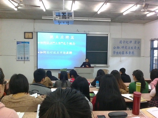 讲座开始前,马俊首先介绍了院系2013届毕业生就业情况和就业性质流向。随后,马俊为同学们介绍了公司就业信息网各个板块的功能和使用,在面试方面,马俊围绕面试评估内容(包括求职者的技能、性格、资格三方面)进行讲解,并分别对男士、女士服装礼仪进行了说明。在讲到求职礼仪的时候,马俊邀请了两名员工进行了现场模拟面试,着重强调了面试时的站姿、走姿、坐姿、握手等。此外,她还对还面试种类、面试中常见问题、面试注意事项等细节问题进行了说明。本次讲座让2014届毕业生学到了许多宝贵的经验,增强了同学们参加应聘面试的信心。