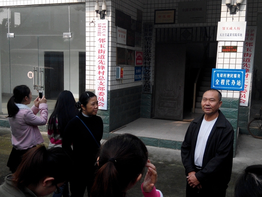 同学们在先锋村支部书记周继怀的陪同下,参观了该村的蔬菜生产、村企业经营、村庄建设、文化活动阵地建设等,听取了周继怀关于社会主义新农村建设的情况介绍。