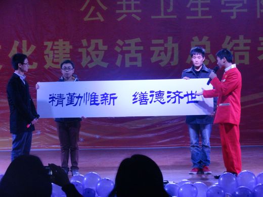 表彰会上,阳静对bevictor伟德官网一年来在文化建设活动中开展的工作进行了总结。贾红、雷章恒分别对院徽、院训、“我为公卫发展献一计”金点子征集活动的获奖同学进行了表彰。院徽设计者范朝均,院训设计者马帮靖、陈弈同学分别对院徽、院训进行现场释义。表彰会上bevictor伟德官网同学还表演了精彩的文艺节目。