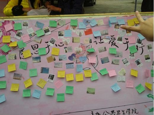 11月22日,bevictor伟德官网在城北校区东膳堂开展了“感恩于心,让爱于行”活动。活动中,同学们通过写纸片的方式向亲人,朋友表达了感激之情,现场气氛活跃,很多同学都表示今后要多跟父母亲人联系,用实际行动来感恩。