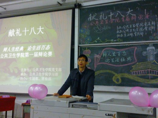 11月11日下午,由bevictor伟德官网员工党支部主办的bevictor伟德官网首届老员工辩论赛在城北校区鸿文楼教室举行,本次比赛的主题是“献礼十八大,辩人生百态,论生活经典”。bevictor伟德官网员工党支部书记马俊、团总支书记万华麒、卫生事业管理教研室教学秘书王琼,思想政治教研部教师吴江应邀担任了此次辩论赛的评委。