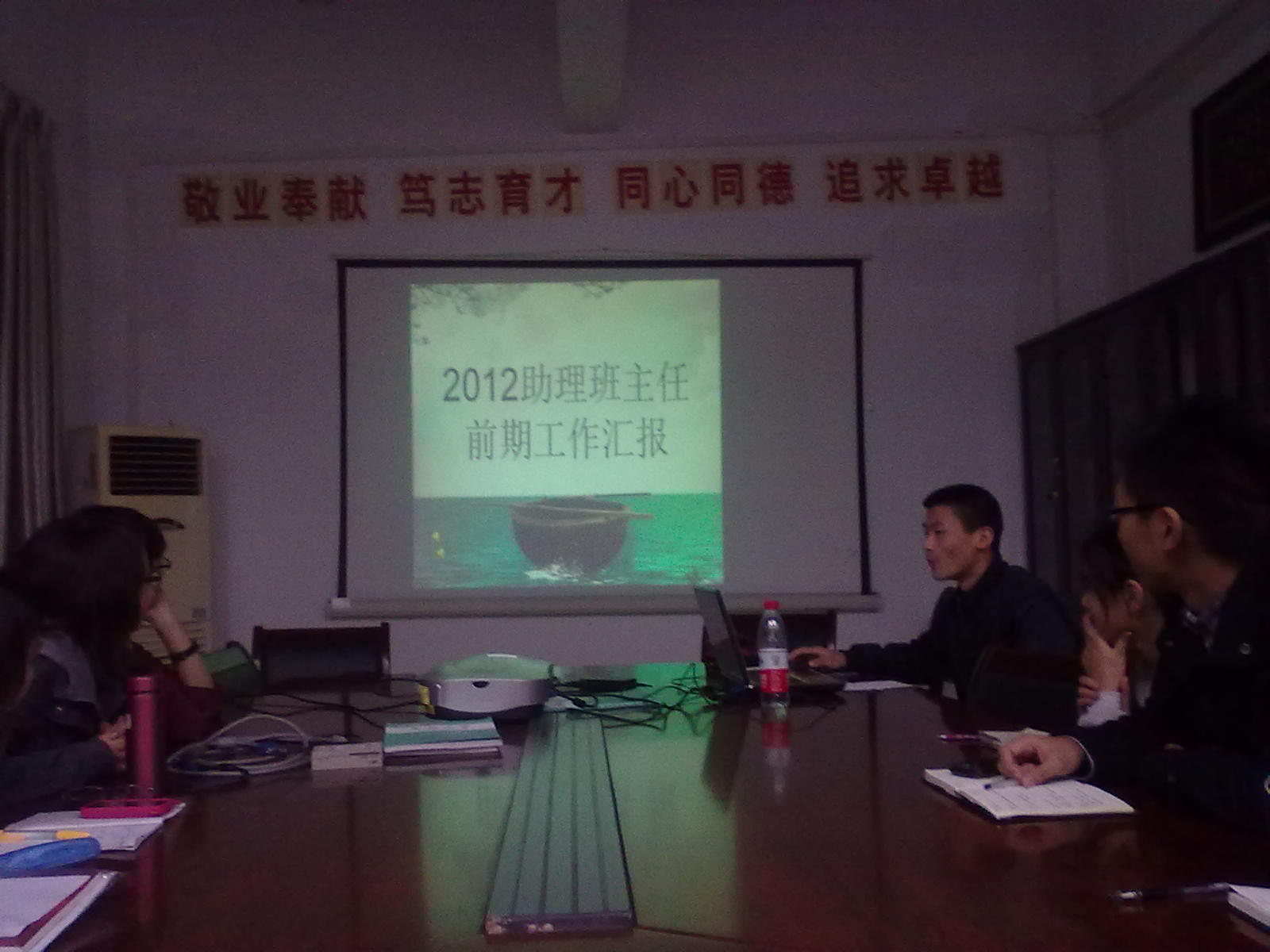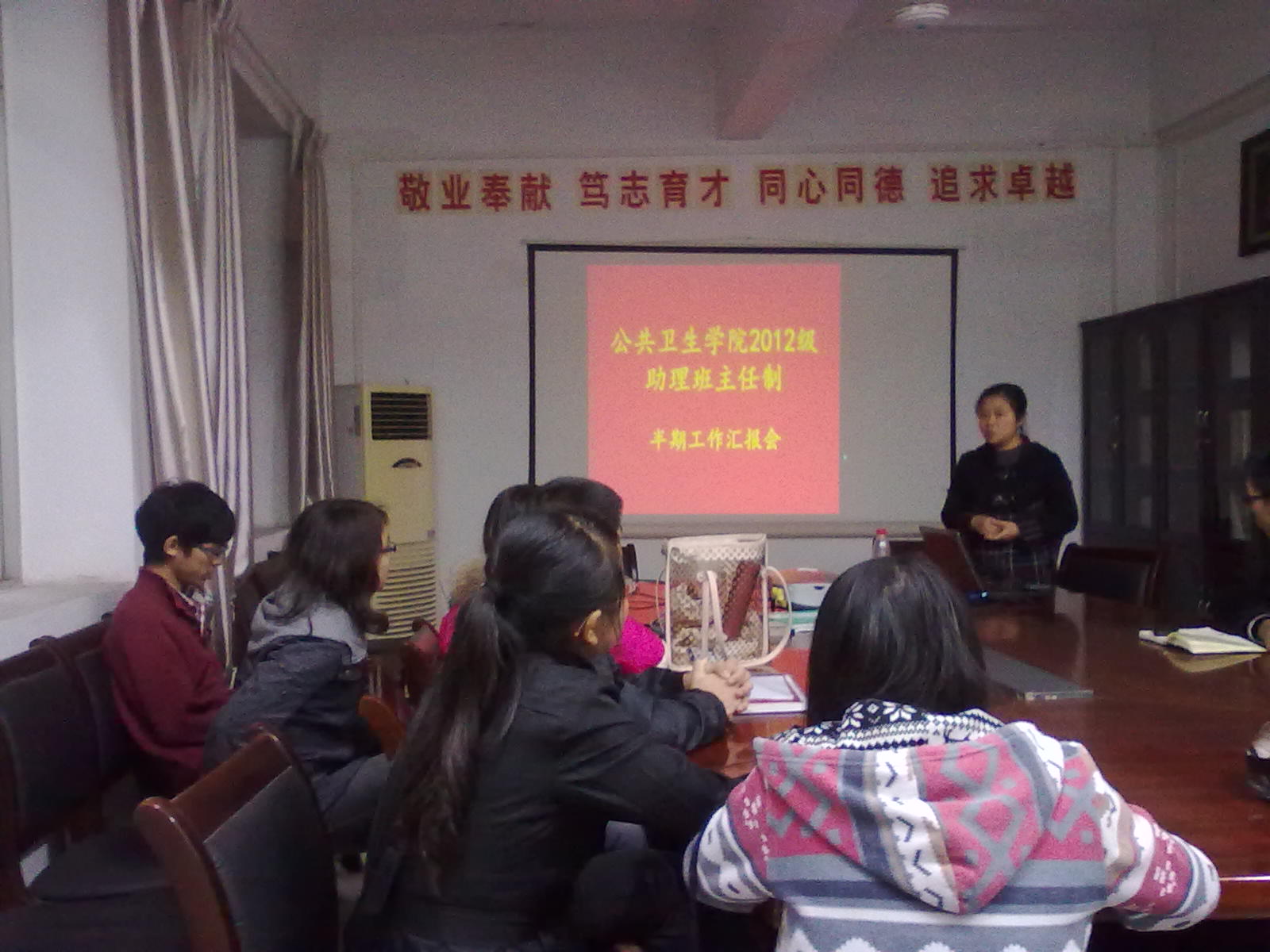11月14日下午,2012级助理班主任中期工作总结会在忠山校区民康楼举行。bevictor伟德官网员工科科长马俊,辅导员万华麒以及2012级各专业助理班主任(以下简称“助班”)参加了会议。会议由万华麒老师主持。