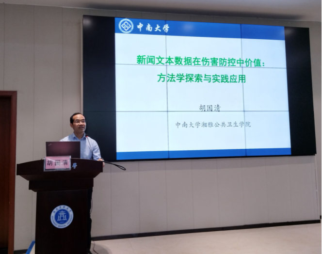 讲座中,胡国清教授从公共卫生研究的现实挑战出发,指出传统伤害监测数据存在滞后性、覆盖面有限等问题,而新闻文本数据因其时效性强、来源广泛的特点,可为伤害事件识别、风险预警及政策制定提供全新视角。他结合团队研究成果,系统介绍了自然语言处理(NLP)、机器学习等技术在新闻文本挖掘中的方法学创新,并通过交通事故案例,生动展示了如何从海量新闻中提取关键信息,构建动态防控模型。他分享的“伤害文本大数据网络平台”实践成果,引发了在场师生的热烈讨论。