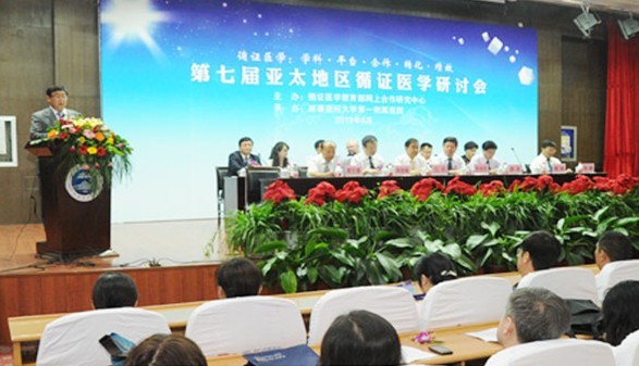 2012年8月2日-4日,第七届亚太地区循证医学研讨会(暨循证医学教育部网上合作研究中心第四批分中心授牌仪式)在新疆乌鲁木齐市召开。大会特别邀请了Cochrane 协作网主席Jeremy Michael Grimshaw 教授,美国中华医学基金会(CMB)协调员Mariel Reed教授,卫生部医政司王羽司长,卫生部科教司刘登峰副司长,国家中医药管理局科技司李昱副司长,教育部科技司周国栋副处长,卫生部中国循证医学中心、教育部循证医学网上合作研究中心主任李幼平教授,自治区政府秘书长李春阳,自治区卫生厅党组书记殷雨霖,新疆医科大学党委书记李斌等参加,会议由新疆医科大学附属第一医院温浩经理主持。19个循证医学分中心领导、研究人员以及来自全国各地的200余名代表参加了会议。
