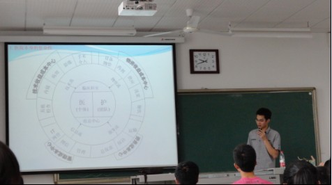 交流会开始,在华西攻读硕士学位的税章林老师就自己的学习经历给11级卫生事业管理的同学详细的讲述了医院现在的结构概况,医院在各方面的配置措施以及卫生事业管理将来进入医院所要从事的工作。并且针对同学们提出的许多与本专业相关的医院就业前景等问题做了逐一耐心的解答。