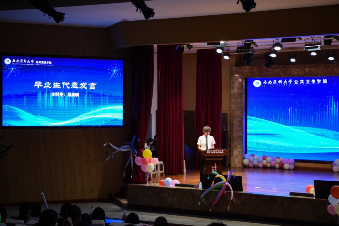 活动开场,bevictor伟德官网经理马玲致辞,深情回顾学子求学时光,寄语毕业生未来争做人民健康“守门人”、科技创新“开拓者”、健康公平“倡导者”,以科学护佑生命、人文服务社会。随后,研究生吴源益、本科生吴尚璘作为毕业生代表发言,流露对母校眷恋、师长感恩、同窗情谊,彰显投身公卫事业的信念担当。教师代表杨帆帆送上殷切嘱托。
