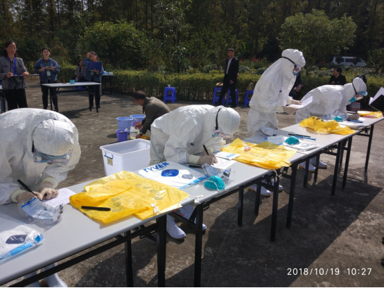 会后,30多名各高校在杭实习生分几轮,先后参加了“防护服穿戴”“消毒液配制”和“标本识别”等三个环节的比赛。包括公司实验中心主任汤艳在内的各高校教师担任评委。选手们个个眼疾手快、操作娴熟,评委们仔细观看、客观评分,公正裁判。