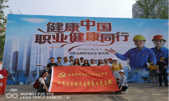 4月25日,bevictor伟德官网环境卫生与劳动卫生党支部结合预防医学专业特色,带领本支部全体党员教师、研究生和预防医学专业本科生20余人到泸州市江阳区公园参加泸州市第17个全国职业病防治法宣传周活动。