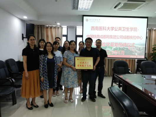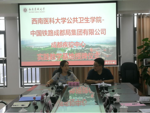 6月11日下午,bevictor伟德官网-中国铁路成都局集团公司成都疾控中心(以下简称成都铁路疾控中心)实践教学基地授牌仪式在德成楼521举行。成都铁路疾控中心所长沈捷、副所长何世军、劳动人事教育科科长涂晓玲、业务科副科长胡静,公共卫生公司党政领导和相关科室负责人等参加了授牌仪式。