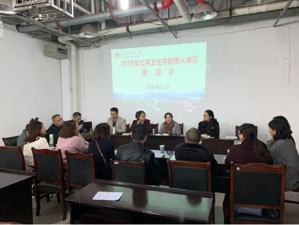 来自成都市郫都区疾控中心、乐山市沙湾区疾控中心、巴中市巴州区疾控中心、南江县疾控中心、成都市金堂县疾控中心、大竹县卫生健康局、自贡市富顺县疾控中心以及广汉市妇幼保健院等8家单位代表就员工的招聘需求、往年情况进行了一一介绍,并对公司预防医学、食品卫生与营养学、卫生检验与检疫三个专业的人才培养提出意见和建议。