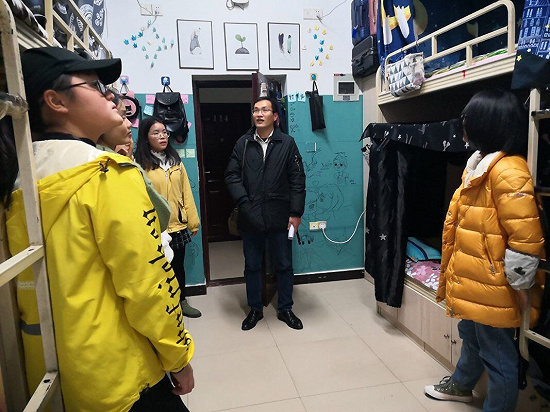 座谈会后,李老师和助班梁娟及班干部一起走访了男、女生寝室,检查了员工宿舍安全和卫生情况,要求同学们节约用水和用电,保持寝室环境卫生,注意用电安全,保护好个人人身和财产安全。